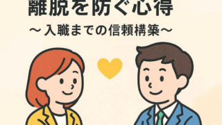 求人全般 採用決定からの離脱を防ぐ心得〜入職までの信頼構築 採用決定から入職までのプロセスは、企業にとって非常に重要な期間です。この時期における信頼構築が、離職防止に大きく寄与します。内定を受けた社員が入社するまでの間に、どのような取り組みを行うかによって、その後の定着率が大きく変わることがあります... 2025.10.23 求人全般